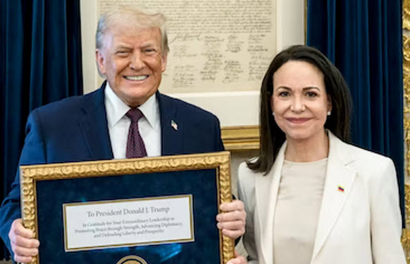 Dans cette séquence, María Corina Machado n’est qu’un figurant tragique : une opposante courageuse, instrumentalisée, qui a cru qu’un geste de soumission symbolique lui ouvrirait les portes de la “grande stratégie” trumpienne. Elle repart avec des compliments creux — “a very fine woman” — pendant que Trump, déjà, passe à autre chose, évoque l’Irak, ISIS, et termine par cette phrase définitive : “Well, she offered it to me.”