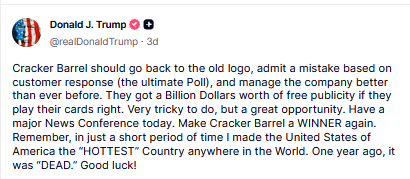 La guerre culturelle bat son plein. Pour le monde MAGA, tout est désormais prétexte à attaquer l’autre camp. Exemple : le changement de logo de la société Cracker Barrel.