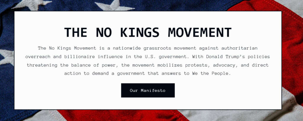 La grande majorité des médias a choisi de mettre l’information sur « Cinq colonnes à la Une ». Mais d’autres semblent avoir délibérément voulu occulter l’événement, pourtant majeur.  C’est le slogan No Kings qui a été assez largement retenu de préférence à No Dictators ou No Tyrants. Le terme King ayant un sens historique qui symbolise la volonté des Pères fondateurs de vouloir construire un régime fondé sur une Constitution et une déclaration des droits garantissant la démocratie et la protection des citoyens.
